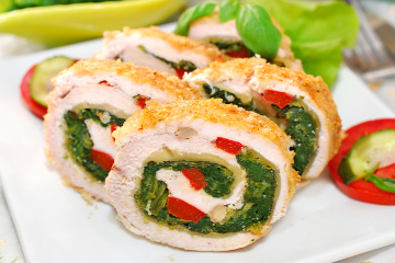 Obiad - Roladki drobiowe ze szpinakiem, papryką, komosą ryżową