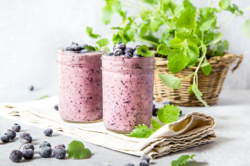 II śniadanie - Koktajl z pomarańczą, miętą, niedojrzałym bananem, orzechami brazylijskimi, borówką amerykańską
