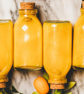 Prawdziwa bomba witamin i minerałów, działających przeciwzapalnie i antybakteryjnie, zamknięta w małej buteleczce. W składzie znajdziemy pomarańczę, jabłko, imbir oraz kurkumę. Pomarańcza jest naturalnym antyoksydantem, wspomagającym funkcjonowanie układu immunologicznego oraz neutralizującym powstające w organizmie wolne rodniki. Mający niski indeks glikemiczny sok z jabłka, będący nieocenionym źródłem błonnika i stymulujący odporność, dodatkowo oczyszcza organizm z toksyn oraz przyspiesza metabolizm. Dodatek wartościowego imbiru nadającego intensywny smak oraz kurkumy – silnego przeciwutleniacza o właściwościach przeciwzapalnych, sprawia, że ta słoneczna, owocowa propozycja z dodatkiem kurkumy i imbiru jest smacznym pomysłem na naturalne wzmocnienie odporności.